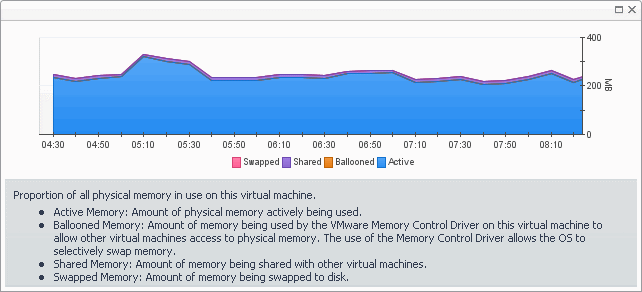 Memory Utilization, Ballooned. The amount of physical memory that is actively being used by the VMware Memory Control Driver to allow the guest OS to selectively swap memory. | |