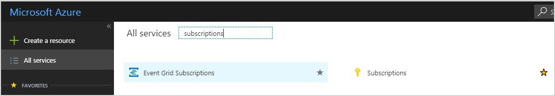 Click All services, and then input “Subscriptions” in the All services text box, and then click Subscriptions. |