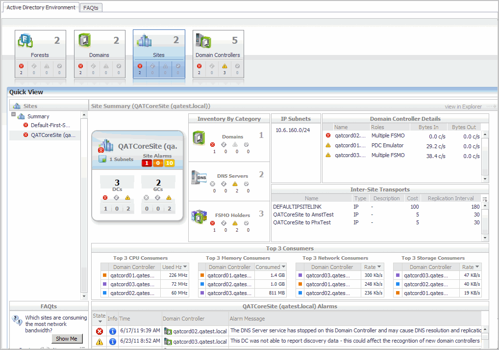 From the Foglight navigation panel, select Dashboards > Active Directory > Active Directory Environment. |