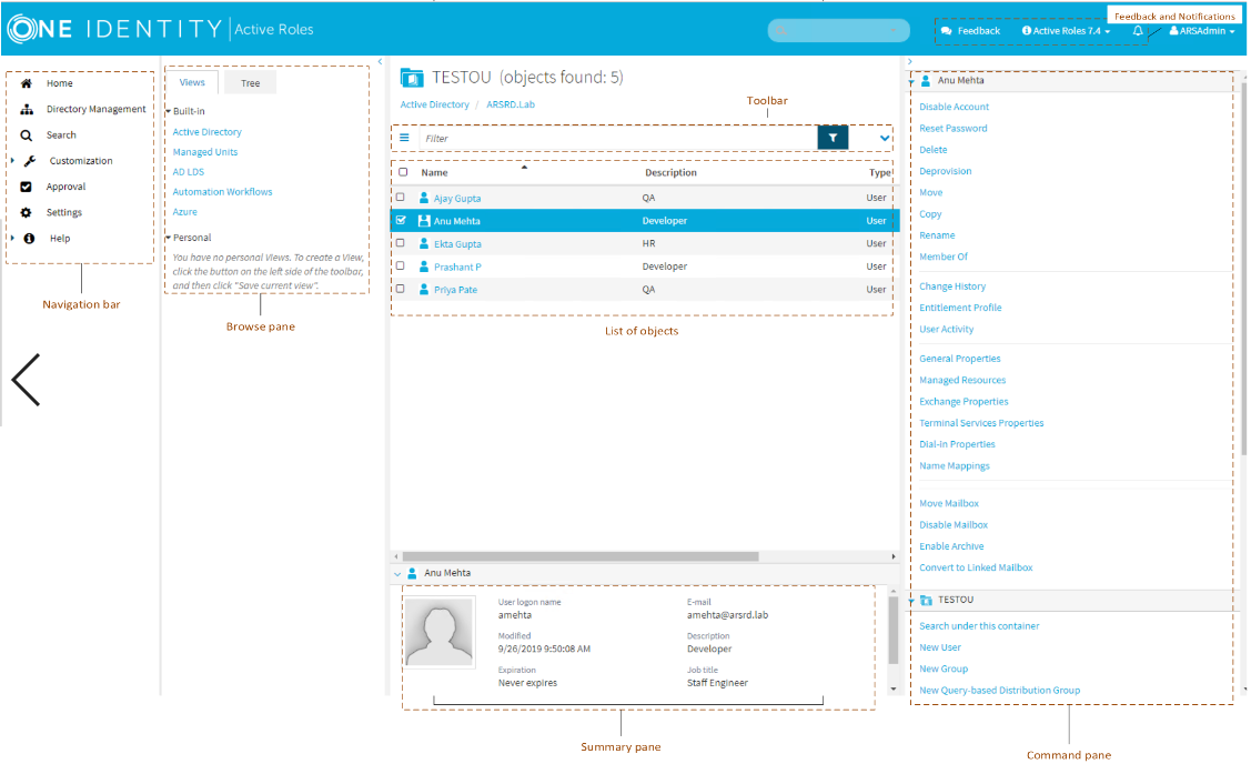- Customization Customize Web Interface pages. Available to Active Roles Admin only.