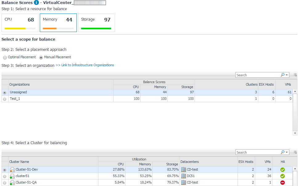 Rebalance Scores: The updated Balance Score if the manual placement is deployed. |