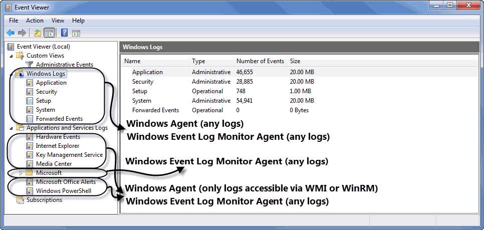 For a configuration example, see WindowsEventLogMonitor configuration example.