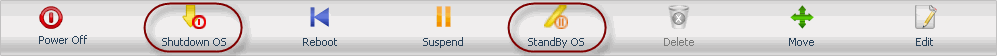 Use the Shutdown OS and StandBy OS buttons on the VMware Administration tab to perform these operations, as required.