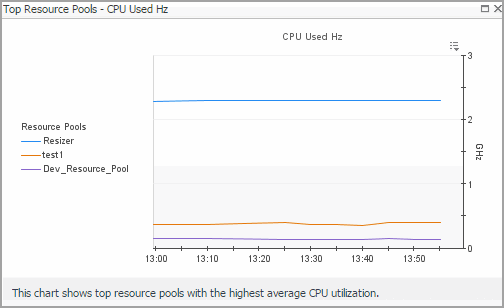 Shows the top three resource pools with the highest average CPU utilization. | |||
