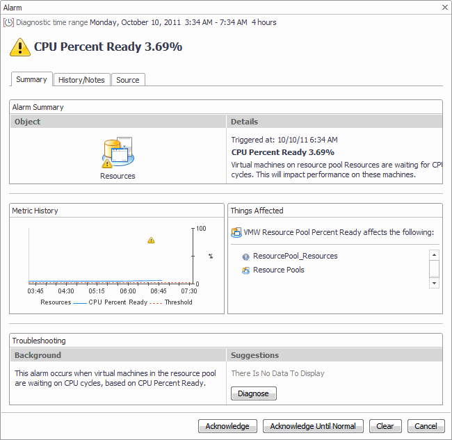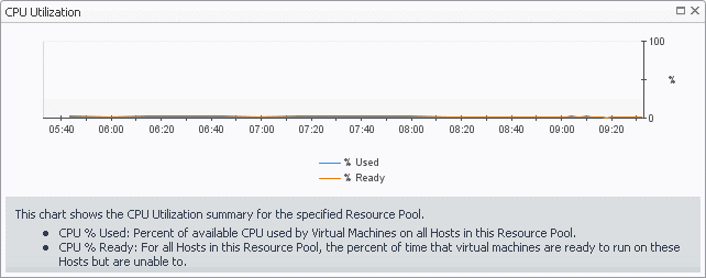 Shows the resource consumption for the selected resource pool broken down into four simple views. | |||