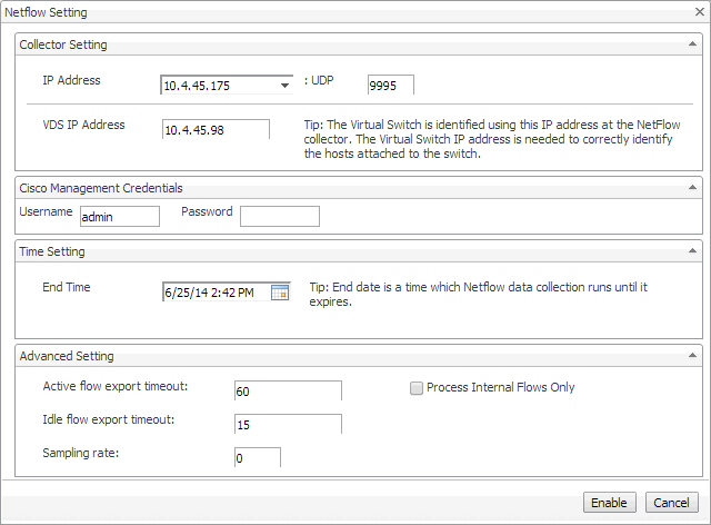 End Time: Select the time when you want the collector to stop obtaining NetFlow data. |