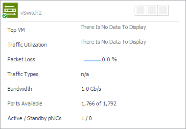 On the VMware Environment dashboard, on the Monitoring tab, in the Virtual Environment Overview, select the Virtual Switches tile. |