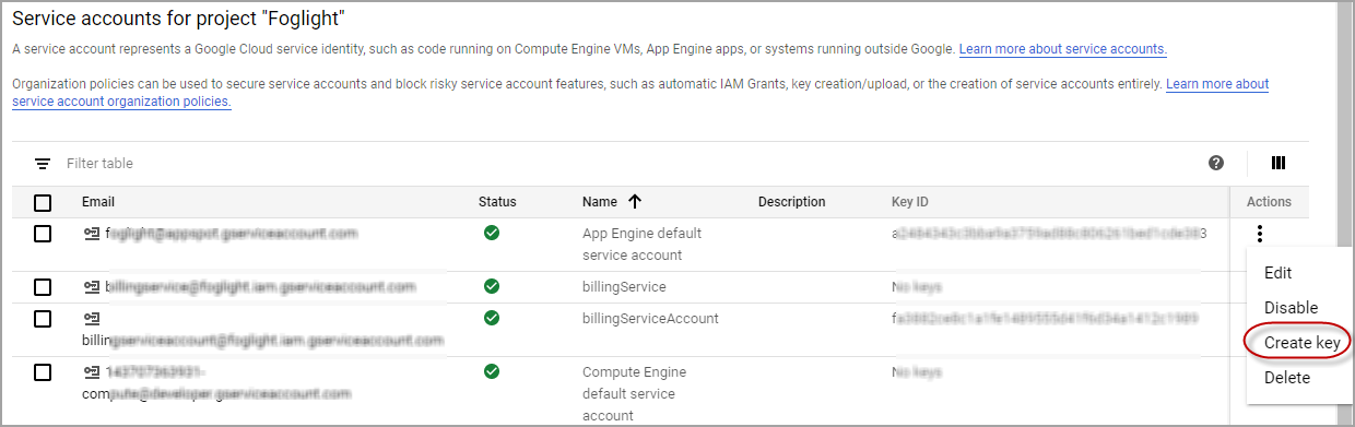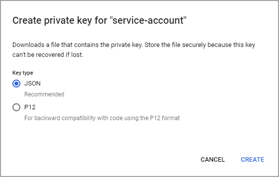 | 4  | Click Create on the popup page and save the private key in a JSON file. |