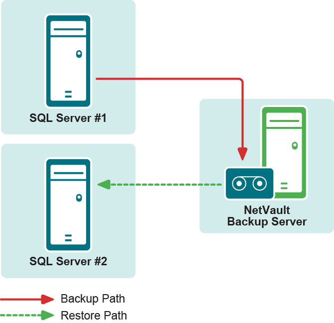 この機能は、障害復旧操作を実行する場合に便利です。データベースを別のSQL Serverにリストアするには、次のトピックで説明する手順に従います。この手順を利用してNetVault Backup仮想マシンを、スタンドアロンNetVault Backupクライアントへリストアすることもできます。