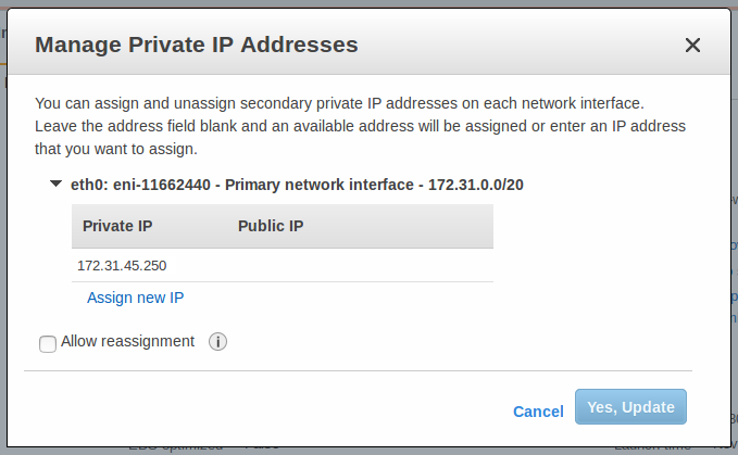 Figure 12: Instances page — Manage Private IP Addresses pop-up window