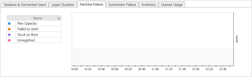 The counts of delivery groups, desktops, and applications over the selected time period. | |