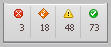 Foglight® for VMware uses status indicators to show the alarm states of the objects within the virtual infrastructure. Four status indicators (fatal, critical, warning, and normal), similar to those displayed in the following image, are used throughout the Foglight for VMware dashboards.