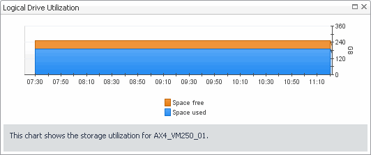 Shows the resource consumption for the selected datastore broken down into four simple views.
