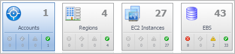 When navigating to the Cloud Manager dashboard for the first time, the Monitoring tab appears. The Monitoring tab allows you to select a monitoring object or a group of objects, such as regions, accounts, EC2 instances, or EBS, and review the data associated with your selection.