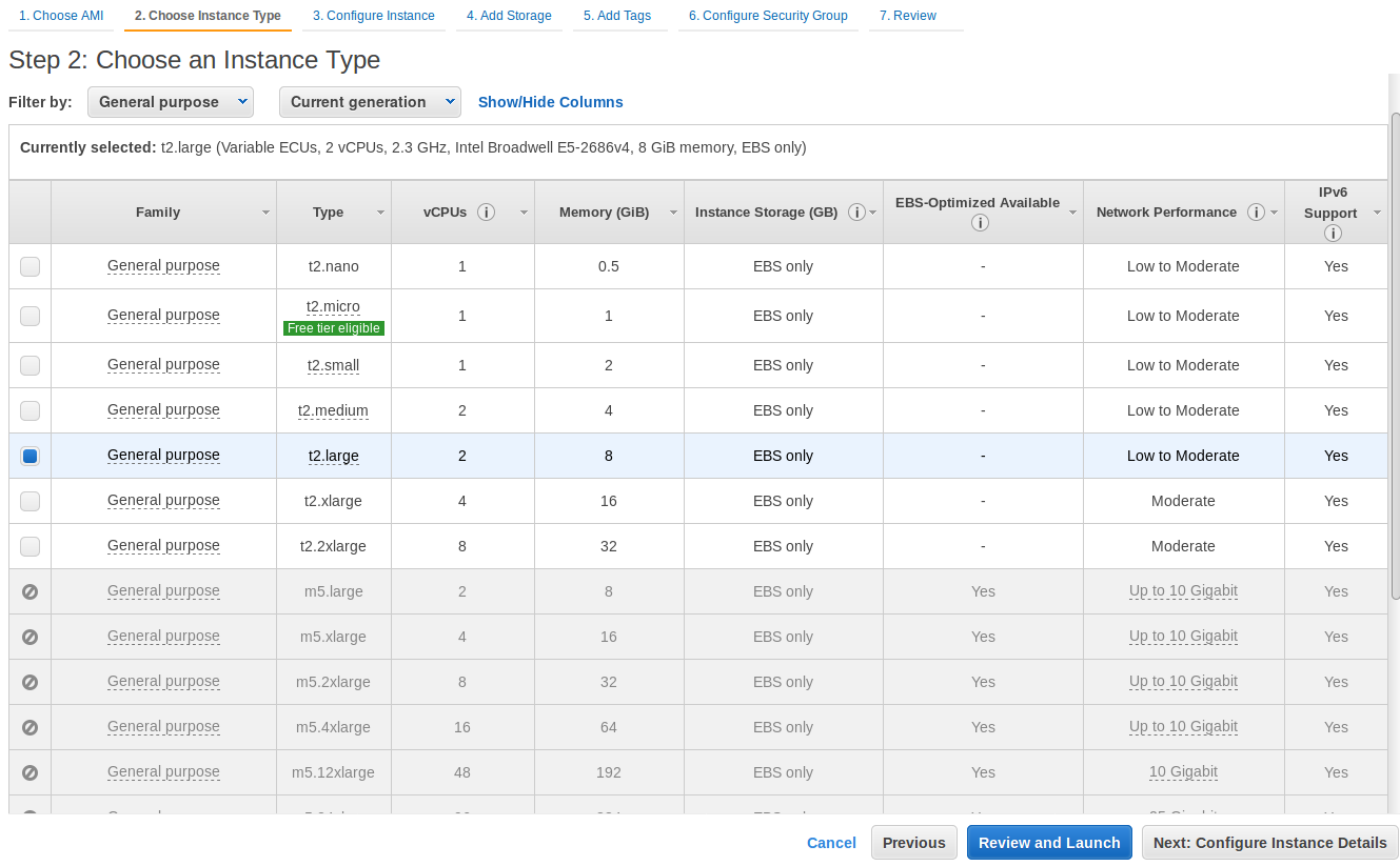 • Under Instance Type, you have at least 8 GiB of memory assigned.