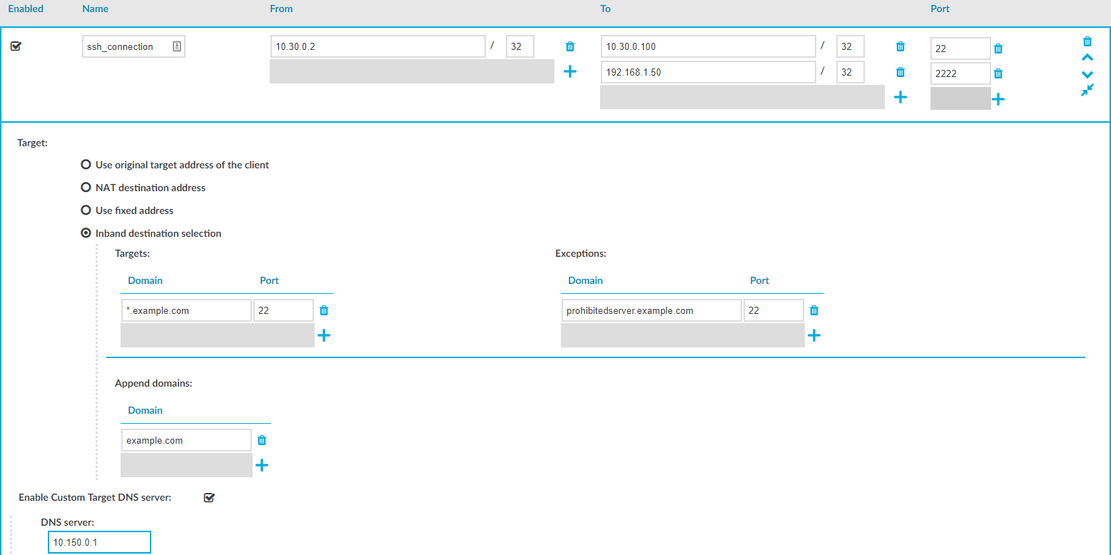 3. Enter the addresses of the servers that the users are permitted to access into the Targets field.