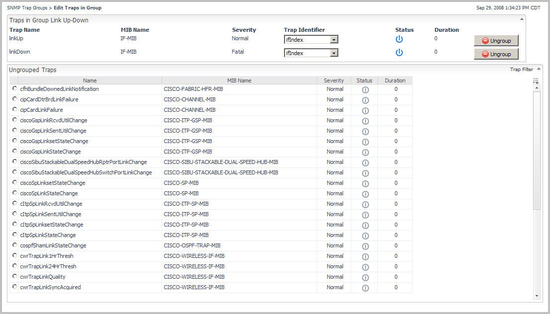 On the navigation panel, under Dashboards, click Integration > SNMP Trap Administration > SNMP Trap Groups. |