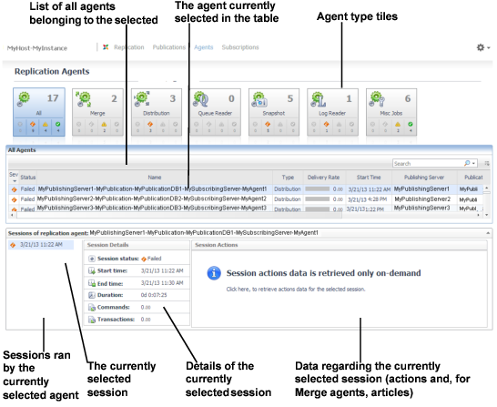 Distributor to Subscriber — displays the Distribution agent’s session actions. |