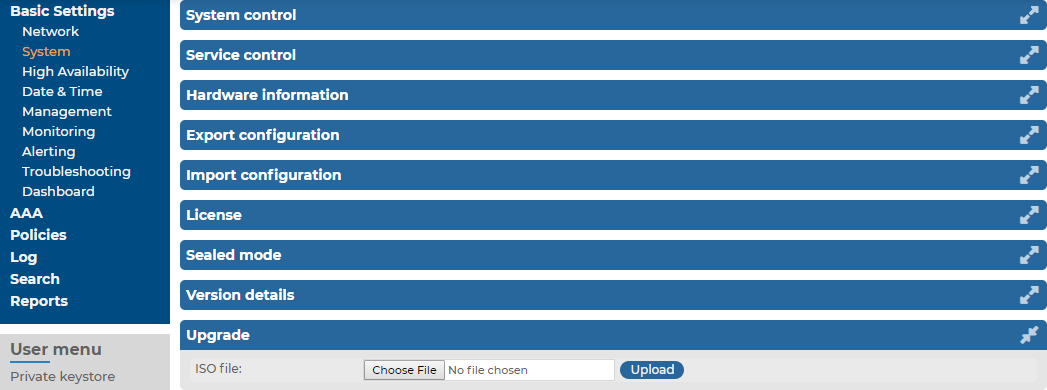 Navigate to Basic Settings > System > Version details and check the version numbers of SSB. In case you encounter problems, you can find common troubleshooting steps in Troubleshooting.