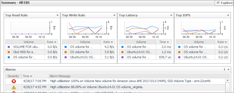 The Explore - Volume view appears when you click Explore in the EBS Summary view.