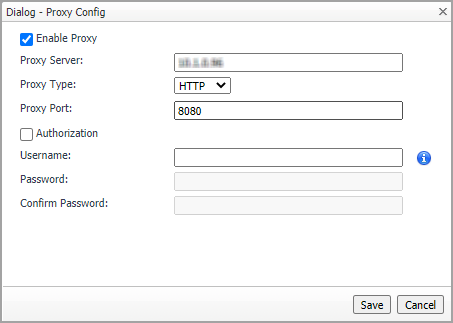 If the proxy requires an authorization, select the Authorization check box, and input the Username and Password. |