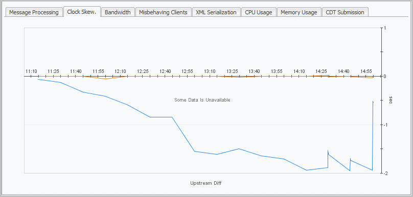 The Clock Skew tab contains a graph that displays the upstream difference per second for a selected Agent Manager instance.