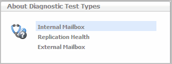 The following types of diagnostic tests are provided with Foglight for Exchange: