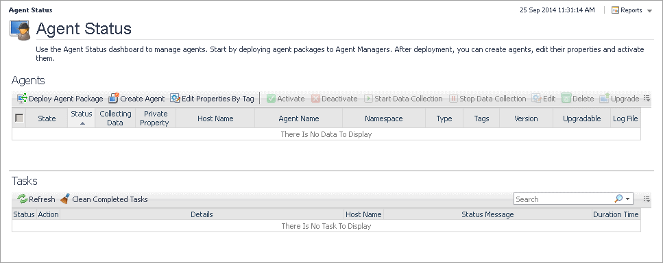 On the Agent Status dashboard, click the Deploy Agent Package button in the lower-left corner. |