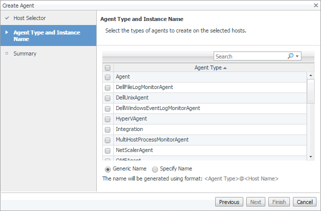 To have Foglight for Hyper-V assign a generic name, ensure that Generic Name is selected. |