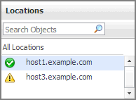 Selecting All Locations shows a list of all host names in the Summary - All Locations view on the right. Similarly, selecting a location in the list shows location-specific metrics in the Location view view on the right.