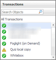 The Transactions view lists the names of transactions that are currently monitored, and shows their states.