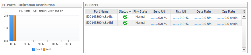 Details. Displays the port’s status, physical details, parent storage array or filer, port controller (for filers and non-cluster arrays) or member node (for cluster arrays), and current values for Data Rate, Ops Rate, Xmit Utilization, and Rcvd Utilization. |