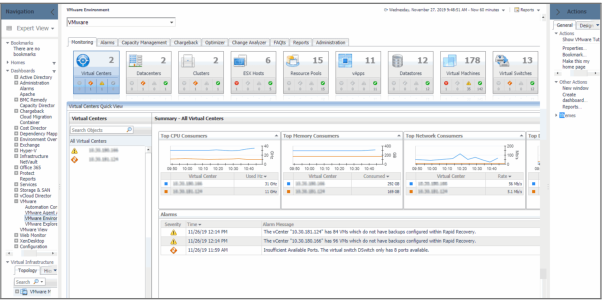 If you do not see any dashboards in the navigation panel, the user id with which you signed in may not have been assigned to a group. For details, see the Foglight for VMware User Help.