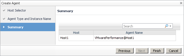 In the Create Agent wizard, on the Summary page, verify that the host name and agent name are correct, and click Finish. |