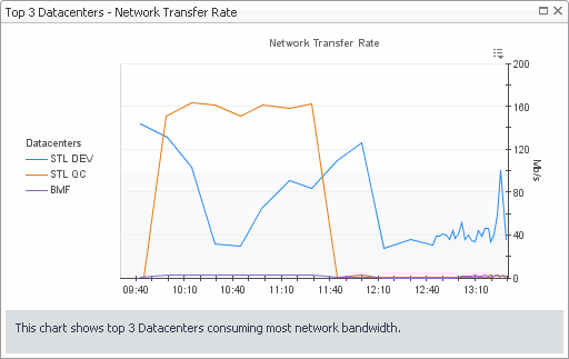 Shows the top three datacenters that are consuming most network bandwidth. | |||