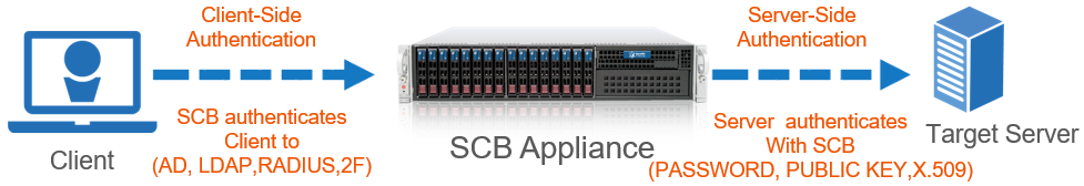 An authentication policy is a list of authentication methods that can be used in a connection. Connection definitions refer to an authentication policy to determine how the client can authenticate to the target server. Separate authentication methods can be used on the client and the server-side of the connection.