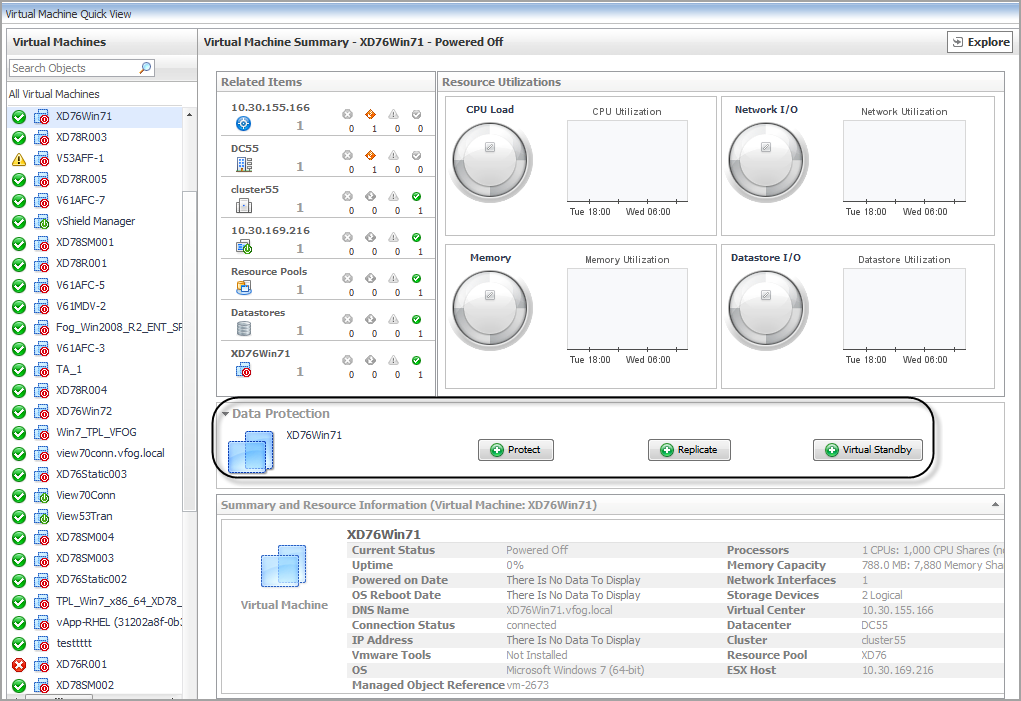 Select a Virtual Machine that you want to protect from the Monitoring > Virtual Machine Quick View > Virtual Machines tree view. |