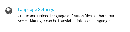 Log in to the Administration Console using the desktop shortcut Cloud Access Manager Application Portal, click Settings on the left hand navigation menu, then click Language Settings.