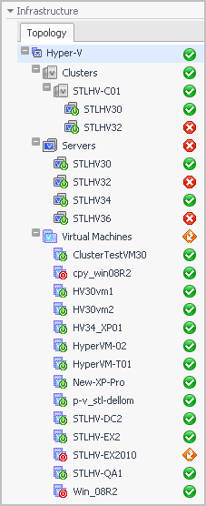 The Topology tab appears on the navigation panel when you access the Hyper-V Explorer. It displays a tree showing a hierarchical structure of the elements in your virtual infrastructure.