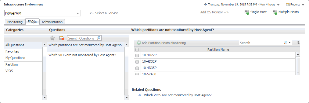 If you want to monitor a VIOS or a partition with Foglight for Infrastructure, you can quickly create a Host agent. Foglight for PowerVM allows you to monitor the health of the system infrastructure associated with a monitored VIOS or a partition. For complete information about host agents, see Using Foglight for Infrastructure agents.