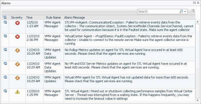 For more information about the VMware Alarms dashboard on which this view appears, see Exploring VMware alarms .