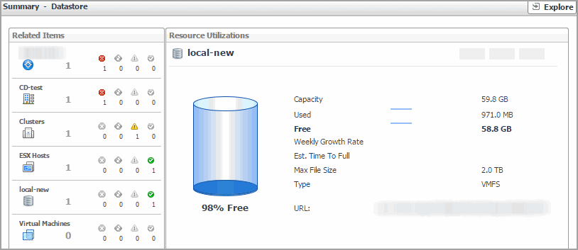 ESX Hosts. The number of hosts associated with the selected datastore, followed by the related alarm counts. | |