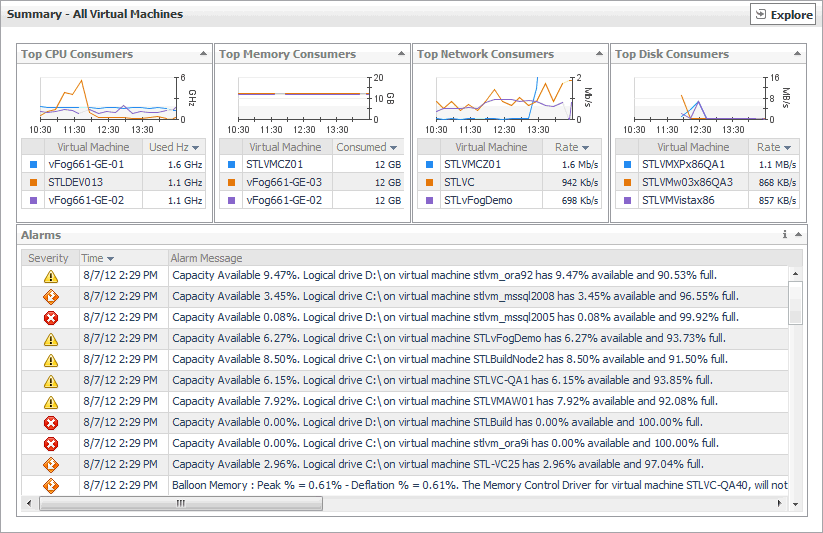 Consumed. Displays the Top Virtual Machines - Memory Consumed dialog box.