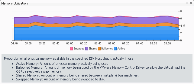 Resource Pools. The number of resource pools that are associated with the selected ESX host, followed by the related alarm counts. | |