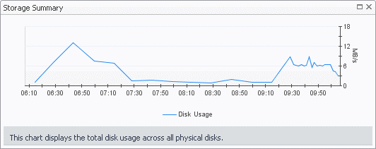 Storage Summary, Disk Usage. The rate at which the server reads from or writes data to disk during the selected time period.