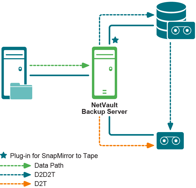 Install NetVault Backup Plug-in for NDMP (Plug-in for NDMP): Install Plug-in for NDMP on NetVault Backup Server if you are using a filer-to-filer setup and want to use the backup device attached to a different filer. |