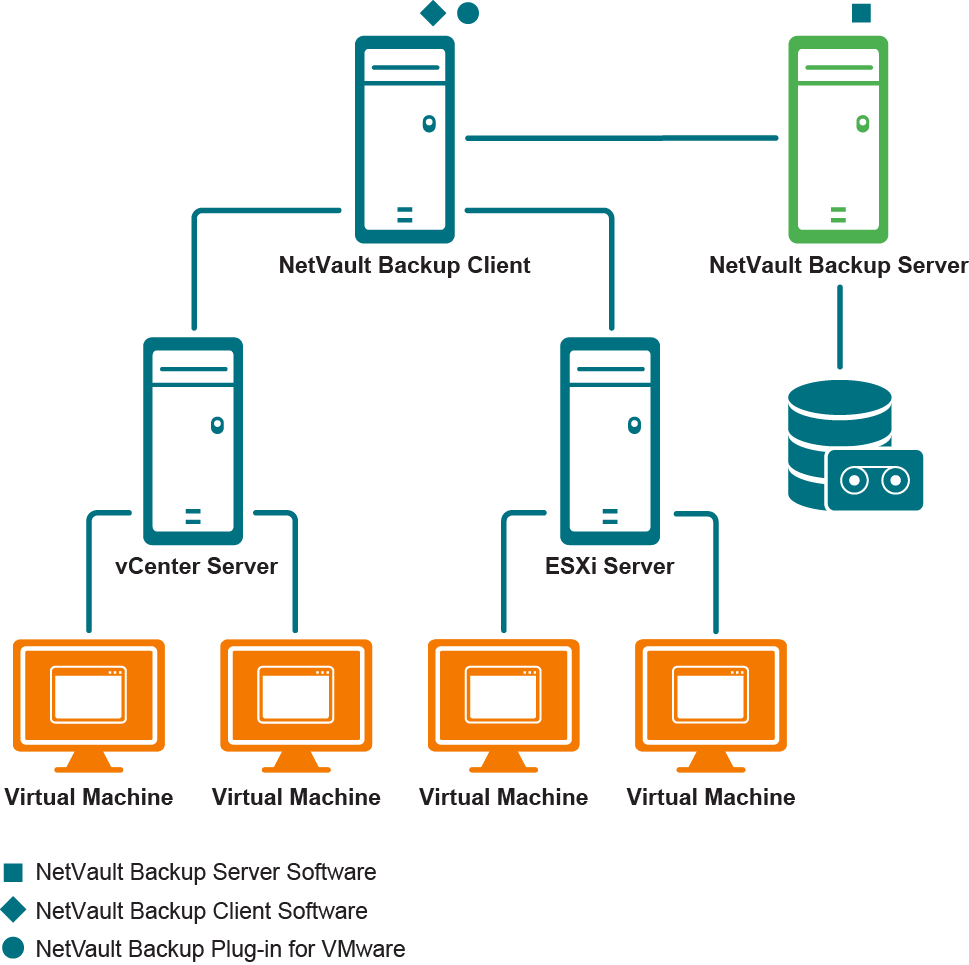 You can deploy the Plug‑in for VMware on any Windows- or Linux-based NetVault Client. This client acts as the backup proxy. You can select either a physical machine or a virtual machine as the backup proxy.