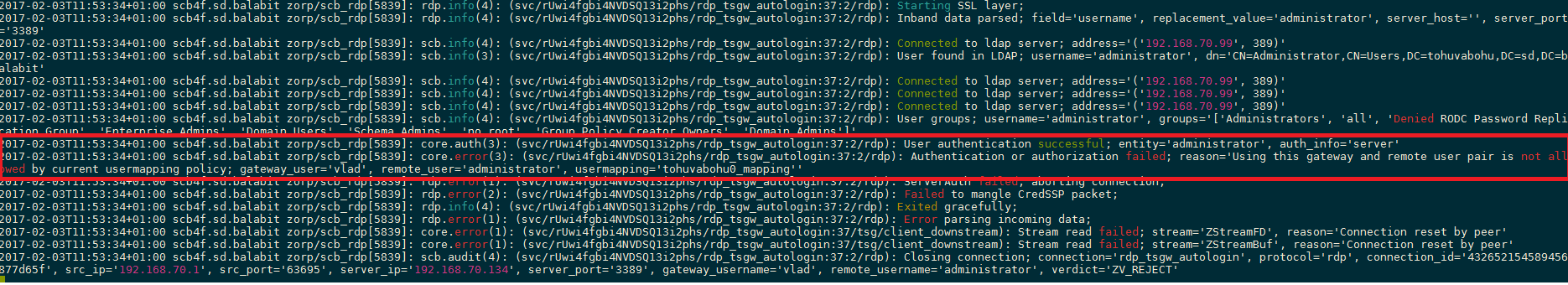 User mapping policy problem. The user is not allowed (based on group membership) to map to the specified remote user