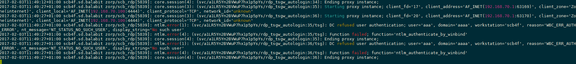 When user failed to enter domain name into RD Gateway login dialogue (e.g. used only the ‘username’ part of the credential, mstsc will not try to connect to RD Gateway, so nothing is seen in SPS’s log