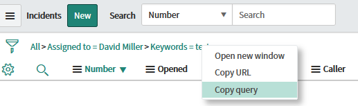 1. In ServiceNow, filter for the required task type view. For example, for an incident task type, enter Incident or INC*.